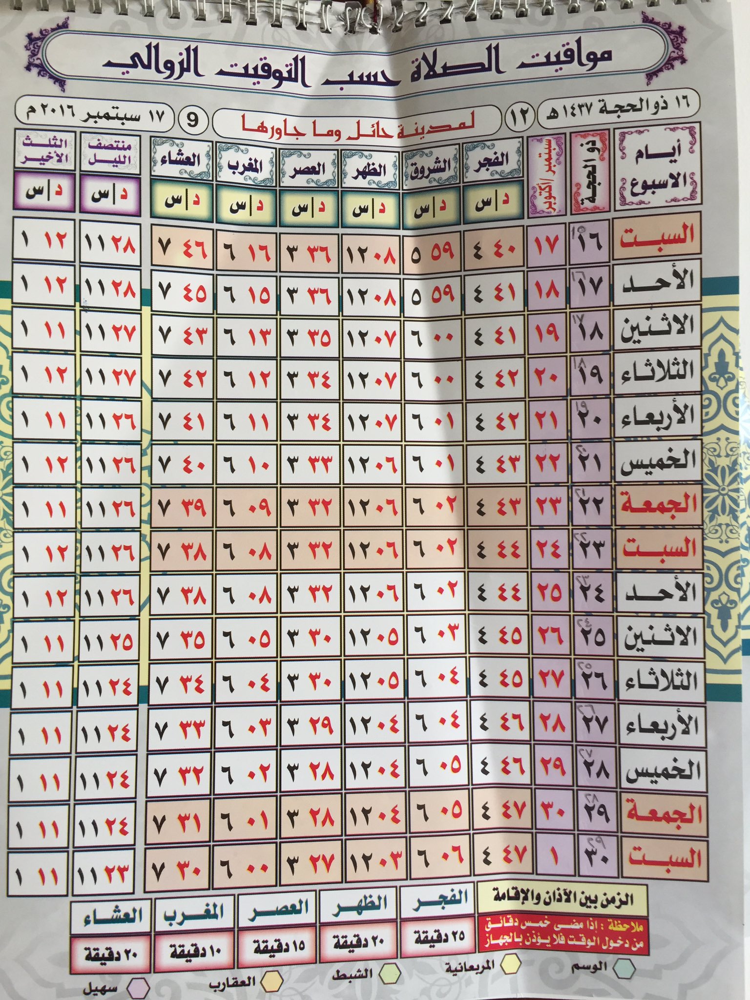 تقويم مواقيت الصلاة بحائل اخبارية الجبل